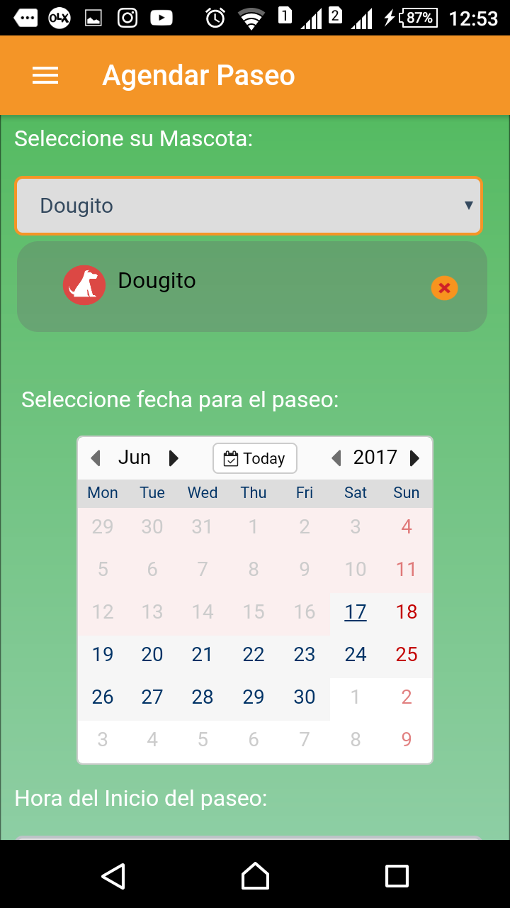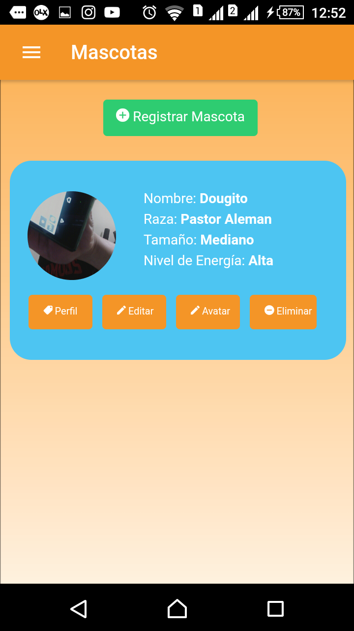 Theme for application of pet walks, uses plugins like network, sqlite, camara uses list of mascot, form of registries, calendars to schedule walks, records of pets, qualification to the walkers
